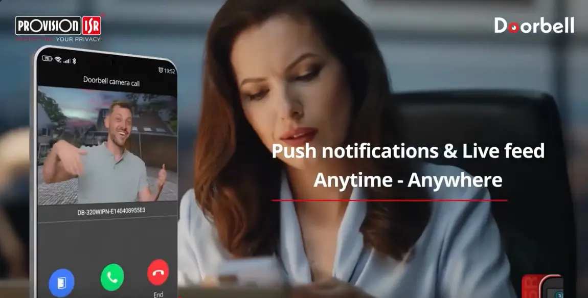 Dankzij ingebouwde bewegingssensoren bent u altijd op de hoogte van activiteiten bij uw deur, dag en nacht. Zelfs als er niet wordt aangebeld, registreert de camera elke beweging en krijgt u een melding. U kunt direct spreken met de bezoeker via de ingebouwde microfoon en speaker – alsof u een intercom met camera in uw hand heeft.